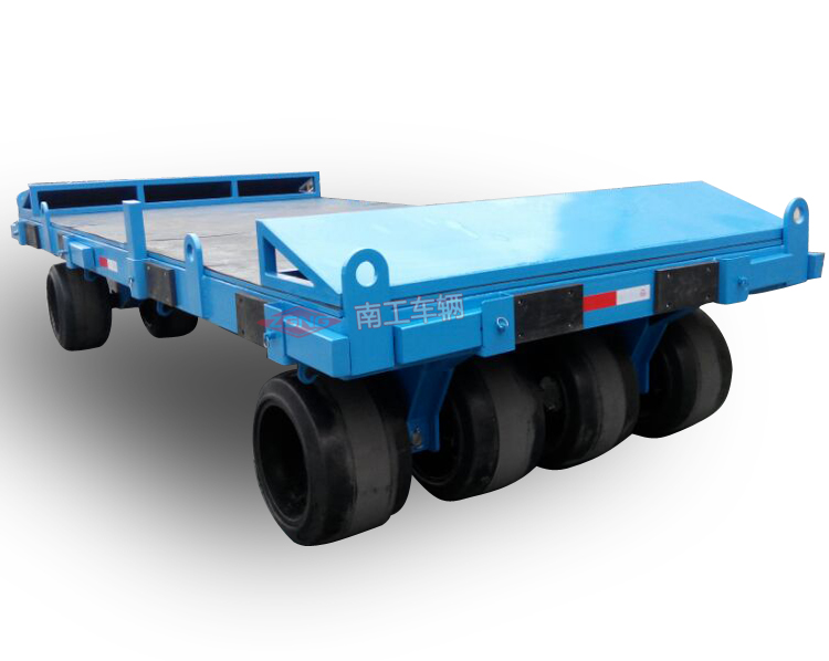 35吨模具过跨重型U8(中国)南工车辆非标订制,本U8(中国)承重35吨,平台表面铺20MM厚橡胶面板,适用于车间模具过跨运输,车间货物周转运输。应用场合:工厂模具过跨运输、车间货物周转。