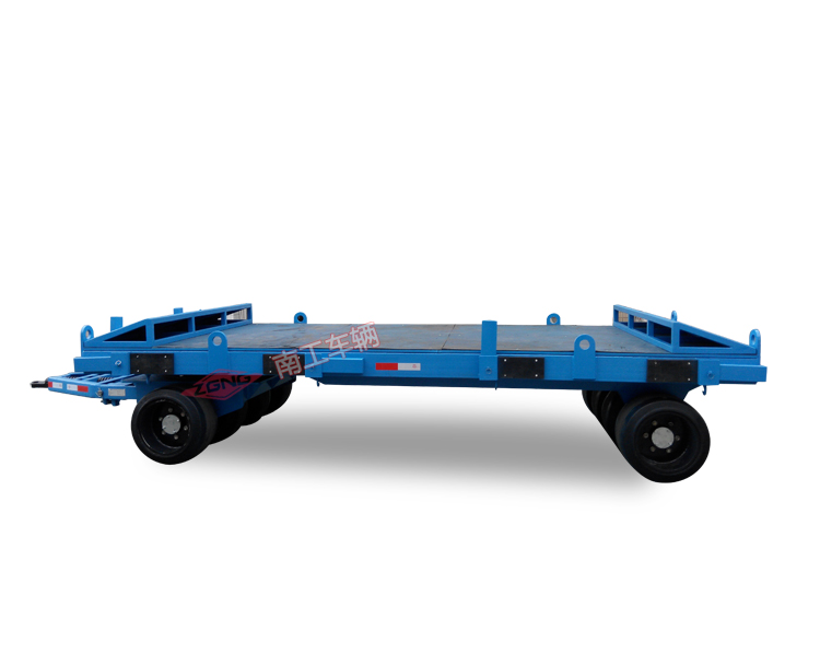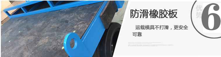本U8(中国)适用于工厂、码头、仓库、物流中心等物流周转运输,特别适用于模具周转,U8(中国)承重35吨,平台铺20MM厚橡胶板。拖车本身无动力,可用5吨叉车、50KN牵引车牵引。